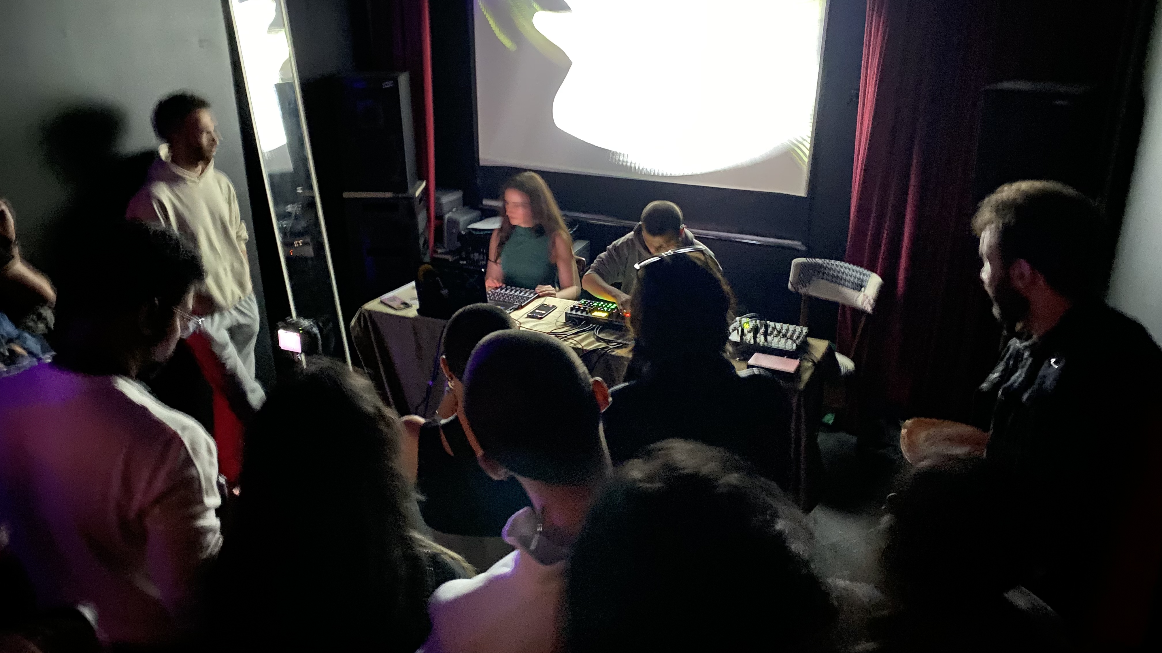 Collaboration, Berlin, 2024Performance Anxiety is the collaborative audiovisual performance project of Antonia Angel and Alp Seyrekbasan. Starting as an improvised set at Berlin's Urban Spree for the exhibition titled 'Phenomenal Orchestra' showcasing the artist Makoto Inoue's works, the duo continued to collaborate together and performed in various spaces and events such as AVJam at Motion Lab and Nutopia at Zemin Art Gallery in Berlin.